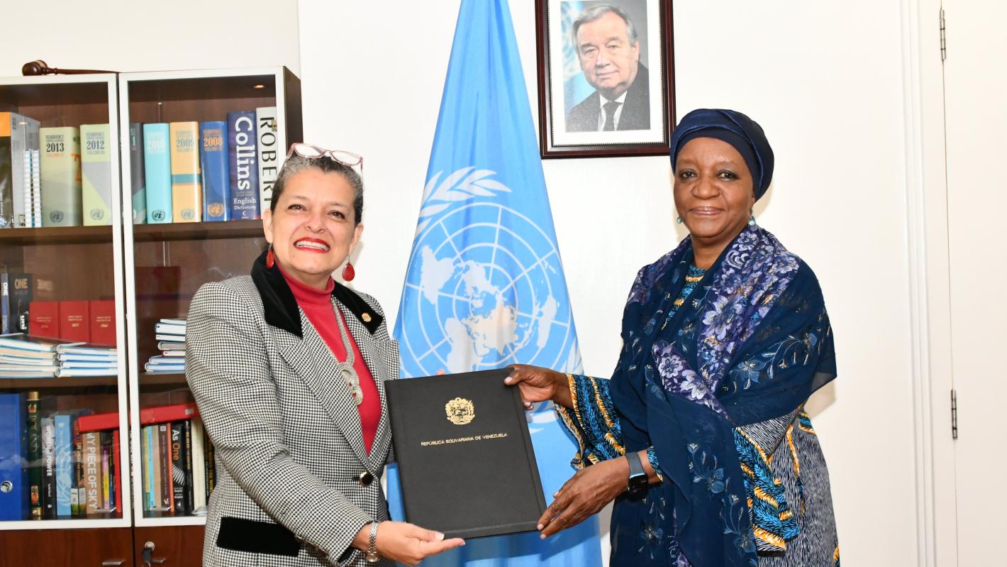 H.E Mrs. Moravia Peralta Hernandez presents her credentials as Permanent Representative of the Bolivarian Republic of Venezuela to the United Nations Offices in Nairobi.