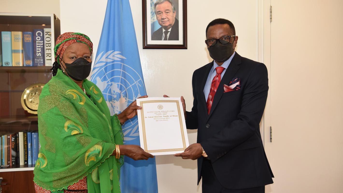 H.E. Mr. Bacha Debele Buta presents his credentials as Permanent Representative of the Federal Democratic Republic of Ethiopia to the United Nations Offices in Nairobi.