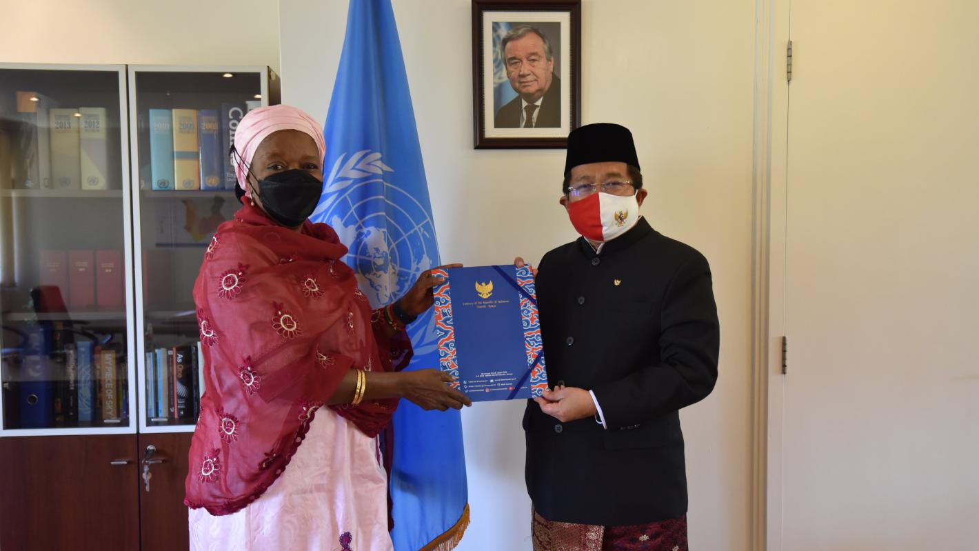 H.E Amb. Mohamad Saripudin presents his credentials as Permanent Representative of the Republic of Indonesia to the United Nations Offices in Nairobi.