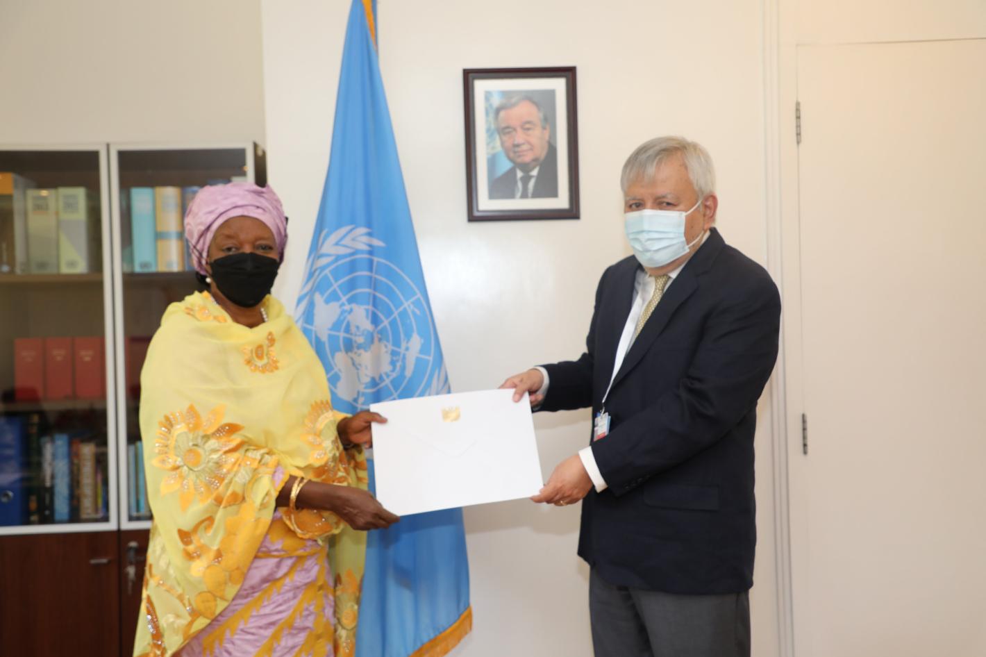 H.E. Mr. Hatem Yousri Hosni, the New Permanent Representative of the Arab Republic of Egypt to the United Nations Office at Nairobi, the United Nations Environment Programme (UNEP), and the United Nations Human Settlements Programme (UN-Habitat), presented his credentials to Madam Zainab Hawa Bangura, Director-General of the United Nations Office at Nairobi (UNON).